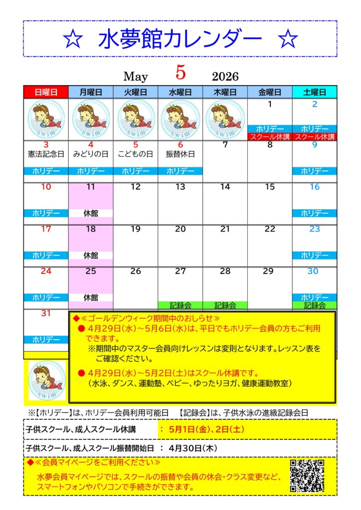水夢館2026年5月カレンダー